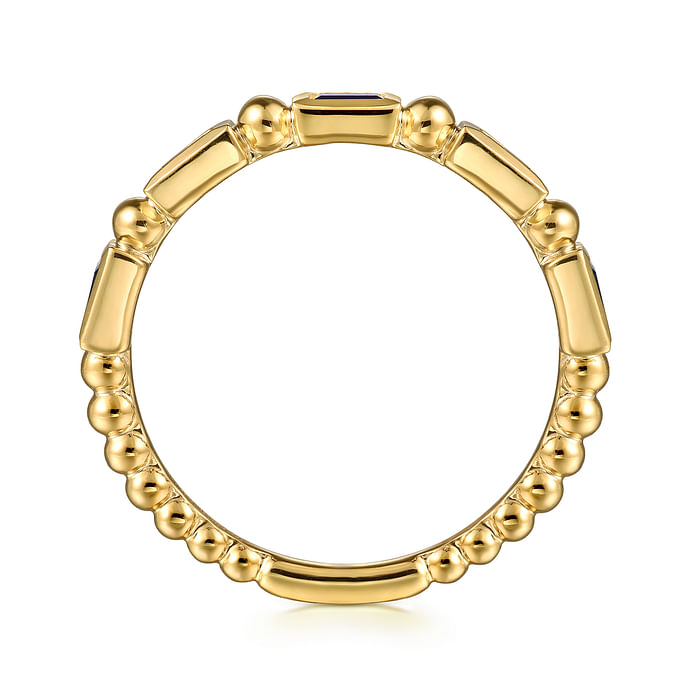 14K yellow gold geometric stackable ring by Gabriel featuring 0.46cttw of rich blue sapphires in a bold, angular design. The clean lines and vibrant color make it a standout piece—perfect for stacking or wearing solo.