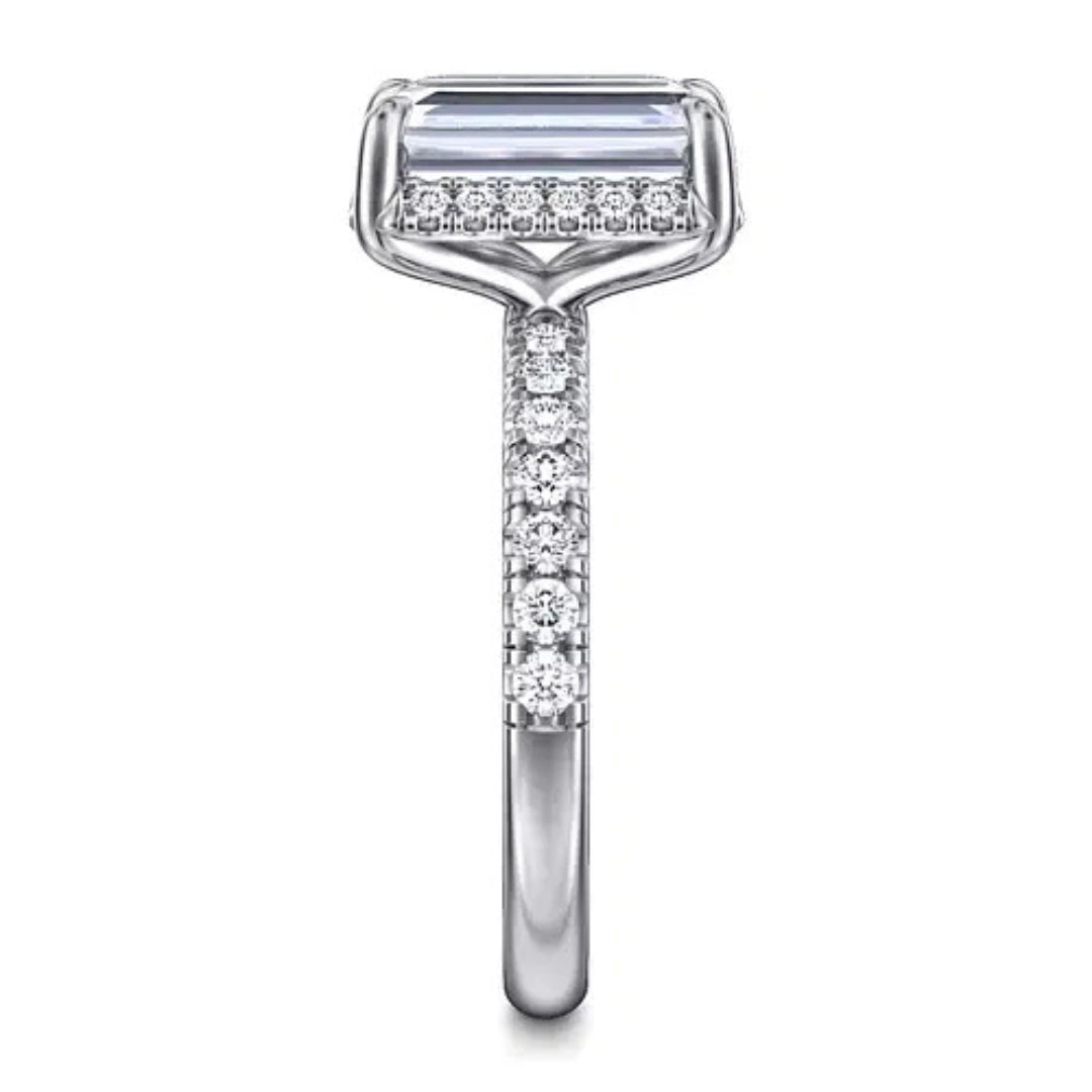 Talisa - 14K White Gold Emerald Cut Hidden Halo Diamond Engagement Ring