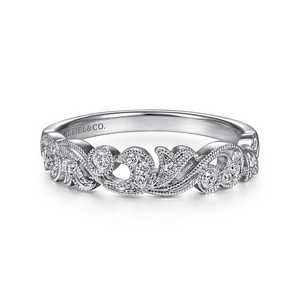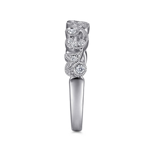 14K White Gold Floral 0.14cttw SI H-I Diamond Stackable Ring by Gabriel – Carter's Jewel Chest