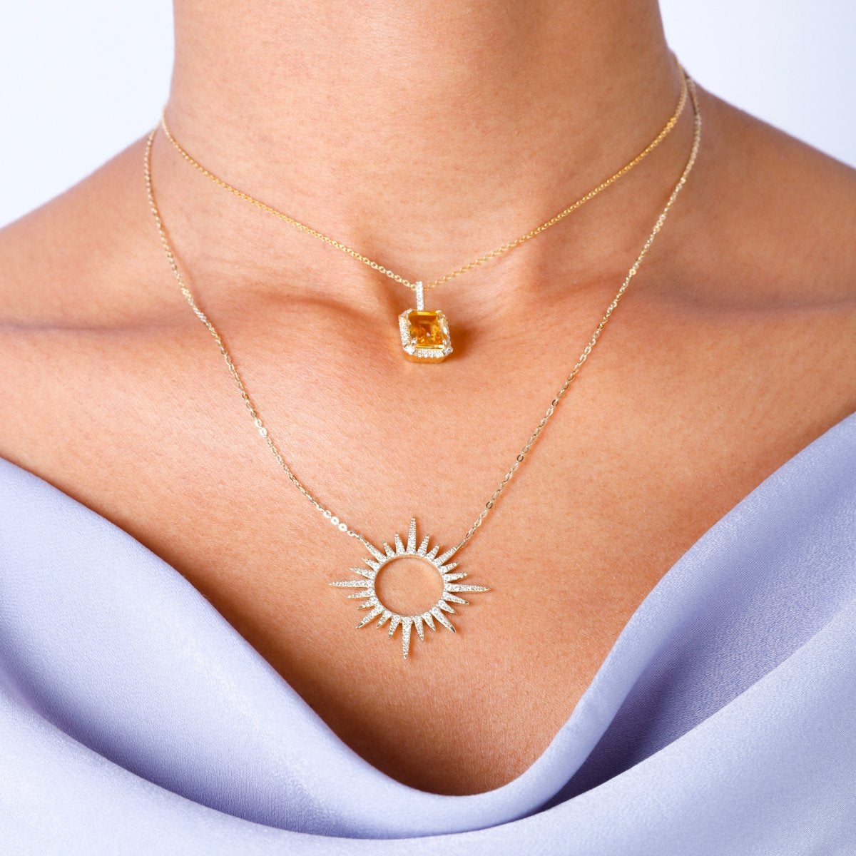 14K Yellow Gold 0.39cttw Diamond Open Sun Pendant
