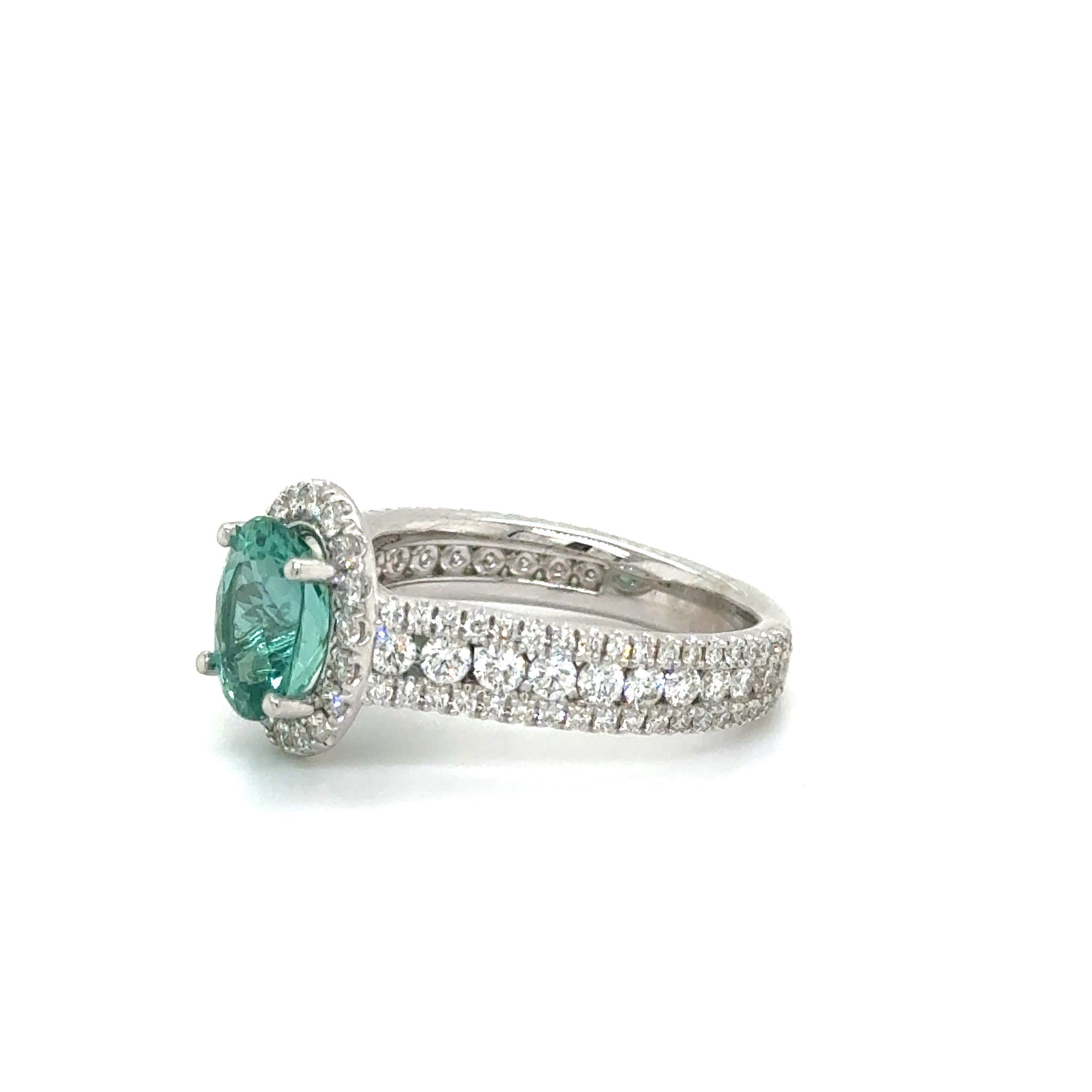 18K White Gold 2.04ct Oval Paraiba Type Tourmaline & 1.30cttw Diamond Ring