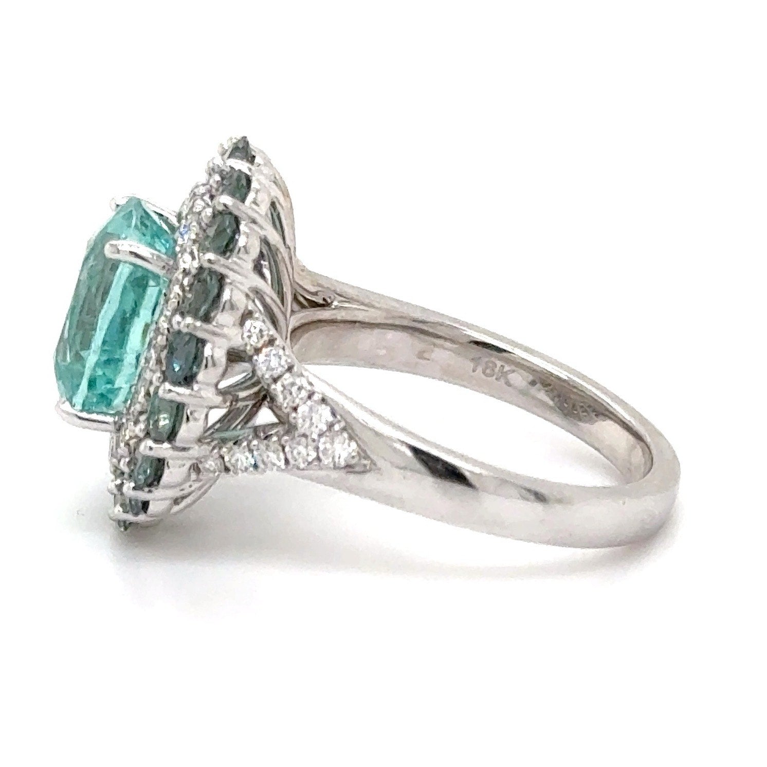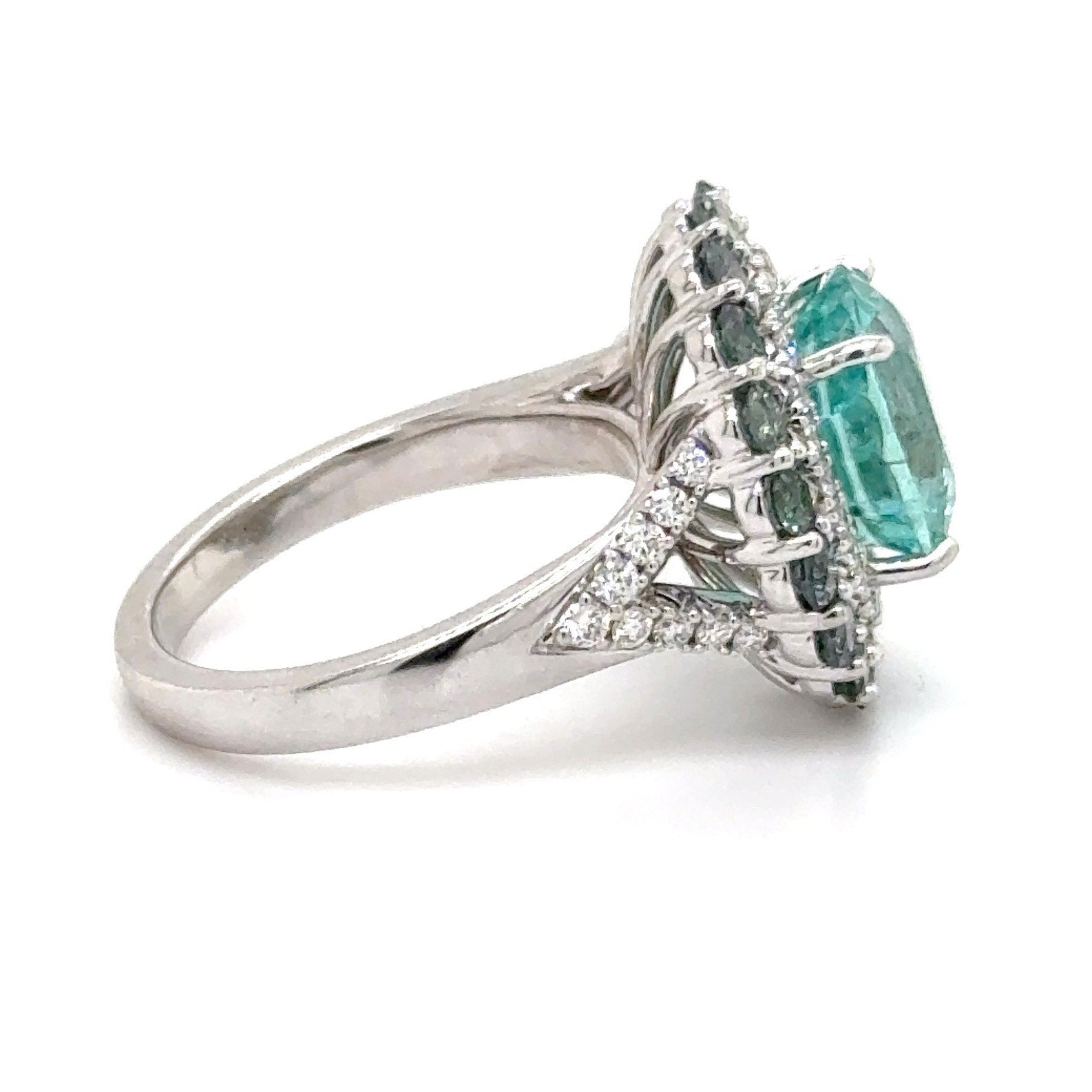 18K White Gold 4.30ct Cushion Cut Paraiba-Type Tourmaline and Natural Alexandrite Ring
