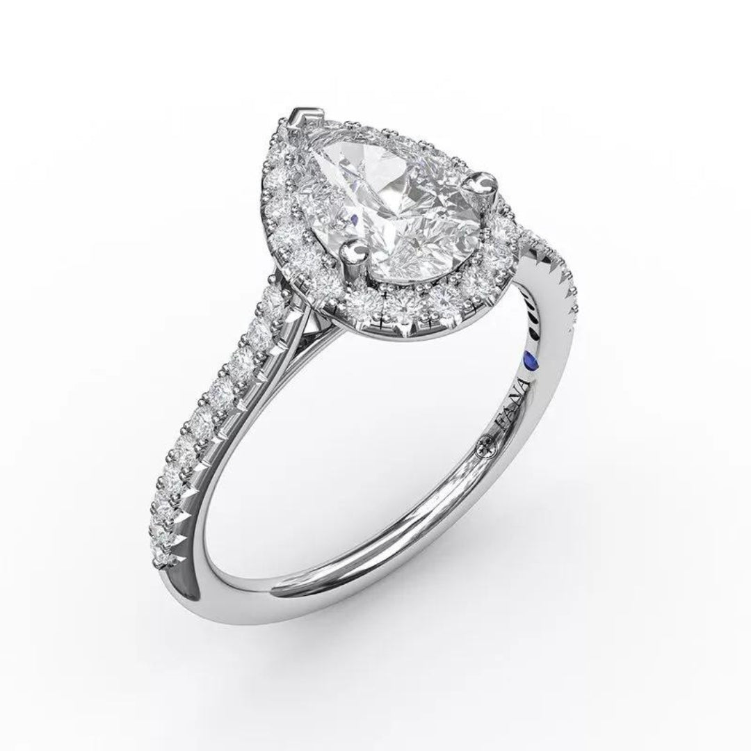 Delicate Pear Shaped Halo And Pavé Band Engagement Semi-Mount Ring