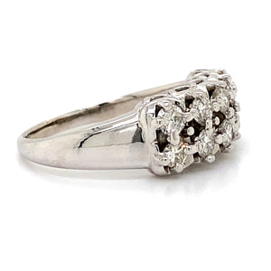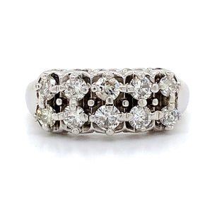 Estate 14K White Gold (10) 1.10 carat total weight SI, G-H Round Brilliant Cut Diamond Double Row Anniversary Band size 8.5
