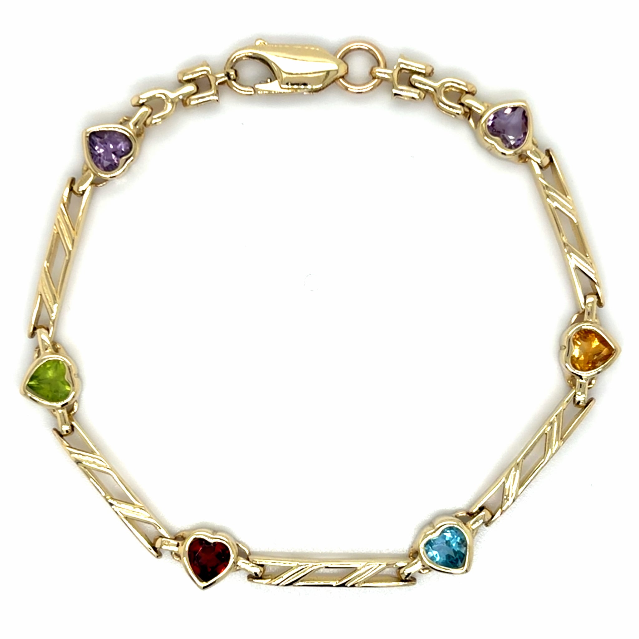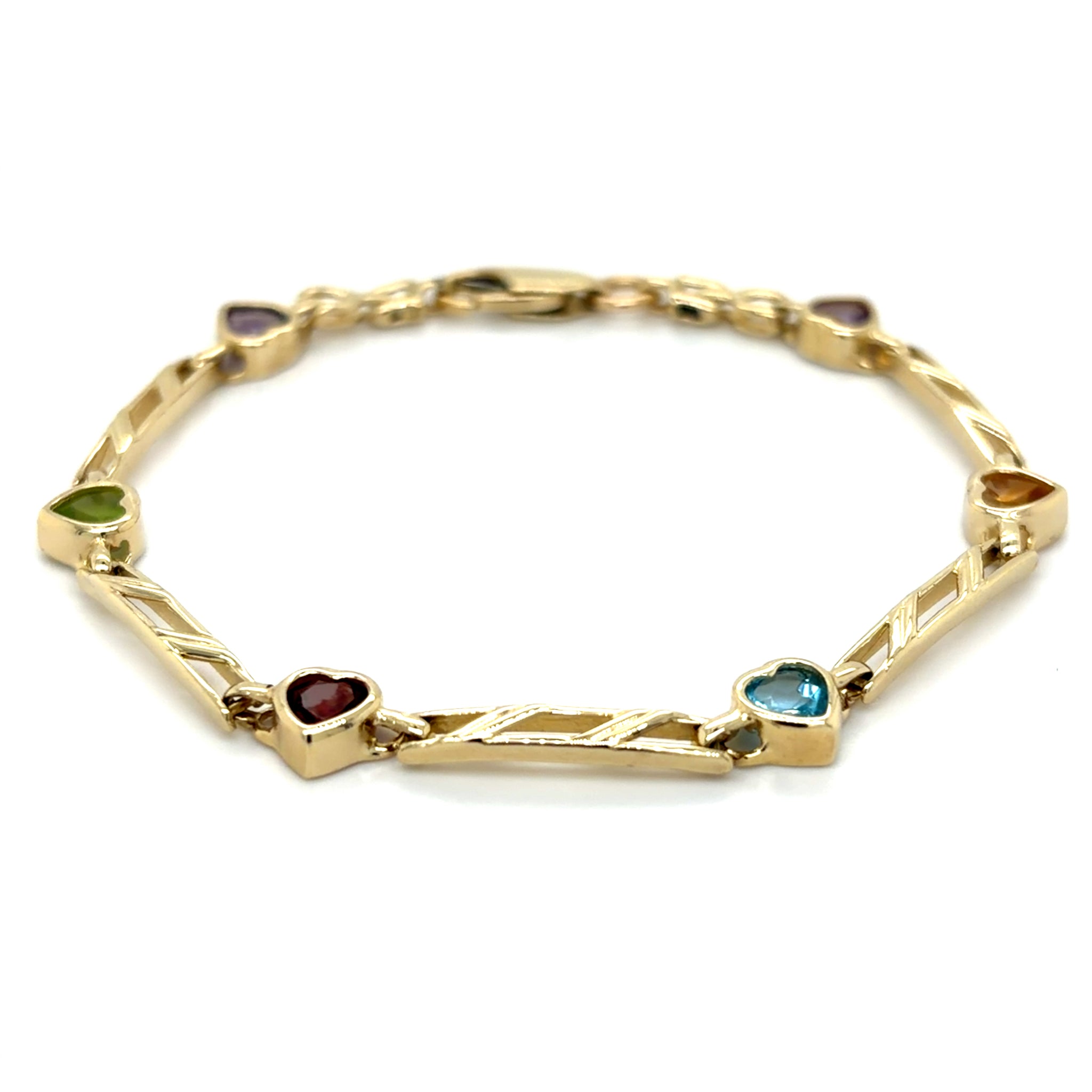 Estate Multi Gemstone Heart Link Bracelet