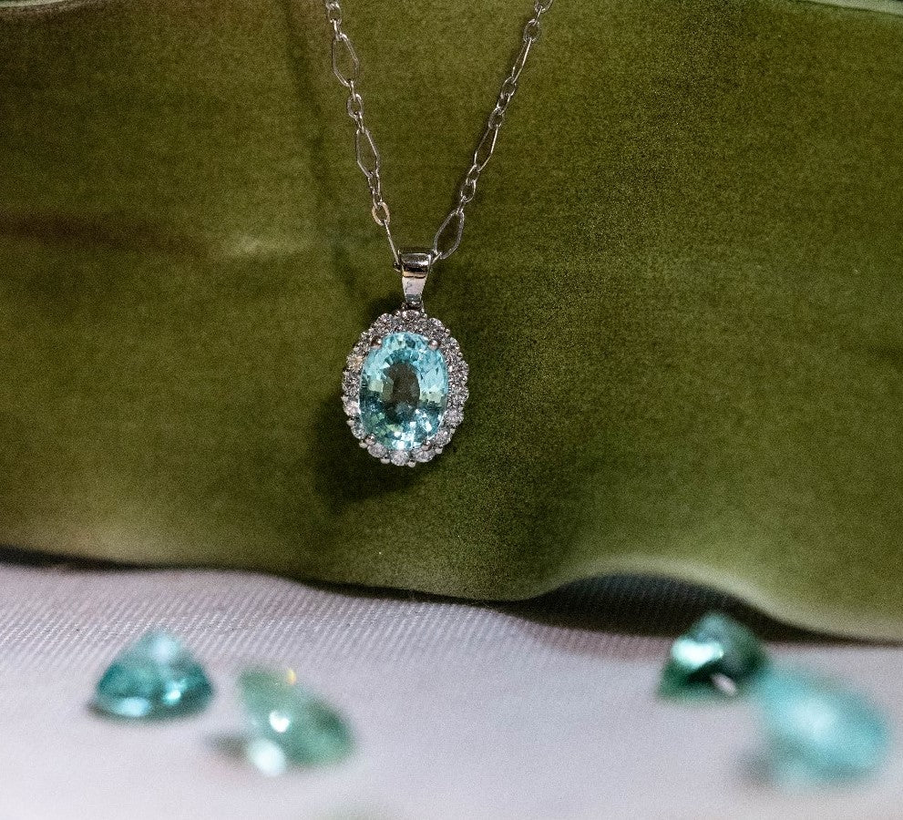 Platinum 3.08ct Paraiba Type Tourmaline & 0.45cttw Diamond Pendant Necklace