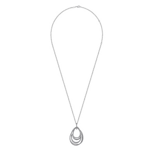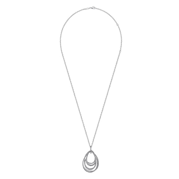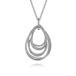 Sterling silver teardrop pendant necklace by Gabriel featuring a multi-row rope design that adds depth and texture. The sculptural teardrop shape offers a modern, dimensional look with timeless appeal.